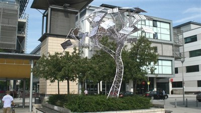 這棵「太陽能樹」(solar tree)高4公尺,將被安排架設在布里斯托(Bristol)市中心的千禧廣場(Millennium Square)的灌木區裡,取代高齡的老樹,太陽樹造型有如強風吹過,樹幹有些彎曲,上面放有36個能吸收太陽能的面板,看來十分摩登,這也是布里斯托綠色城市計畫的一部分。