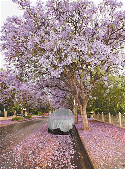 藍花楹是一種原生於南美洲的亞熱帶樹種,因其花型美麗,顏色漂亮,花期較長而在世界各地廣泛種植。每年暮春初夏時節,藍花楹會在澳洲很多城市盛開,澳洲有一首關於藍花楹的耶誕歌曲「藍花楹盛開,耶誕節將至」;又因為開花時節接近澳洲學校期末,藍花楹也被澳洲學生稱為「考試樹」。圖/新華社