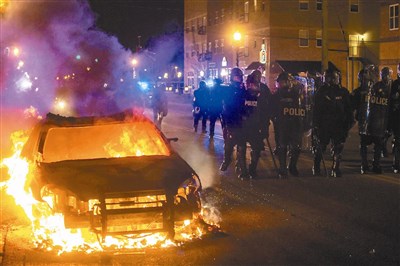 八月九日,十八歲的黑人青年布朗在佛格森被白人警察威爾森開槍打死。這起事件引發大規模抗議,逐漸演變成暴力騷亂,更有人趁火打劫。本月十六日,密州宣布進入緊急狀態,當天起每天午夜至次日凌晨五時實行宵禁。