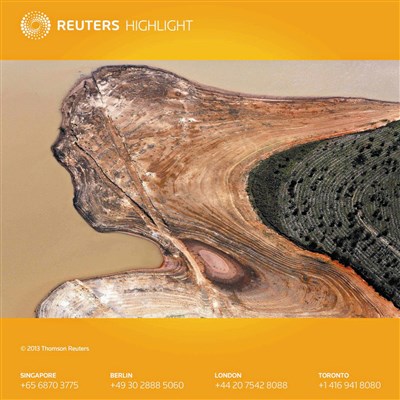 巴西今年遭遇八十年來最嚴重乾旱;供應聖保羅大部分地區用水的坎塔莉亞水庫水位創下史上新低。下圖為上周坎塔莉亞水庫乾涸情況。