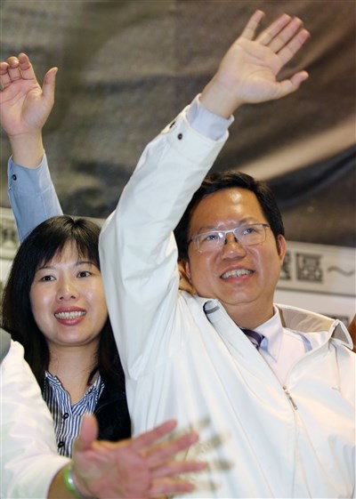 民進黨鄭文燦宣布 當選桃園市長 |2014.11.29 語音朗讀 978觀看次 字級 大 中 小 民進黨籍桃園市長候選人鄭文燦(右)與太太在競選總部發表勝選感言後,揮手向支持者表達謝意。圖/蘇健忠 【本報桃園訊】民進黨桃園市長候選人鄭文燦,今晚自行宣布當選桃園市長。 正確選舉結果,以中央選舉委員會公告為準。 前一篇文章 江揆請辭負責 新閣內外挑戰多 下一篇文章 國民黨邱鏡淳宣布 當選新竹縣長 熱門新聞 01伊朗示威恐2萬死 川普:援助在路上2026.01.1502楓紅常寂光寺2026.01.1503星雲大師全集【傳記】百年佛緣─社緣篇 與佛菩薩感應記 4 - 32026.01.1504倫敦佛光山、法身寺 南北傳佛教倫敦交流2026.01.1505花10年拍檯面下動物 可愛爆表2026.01.1506法華禪寺深化宗教交流 拜會斯里蘭卡駐法大使2026.01.1607【快樂塗鴉簿】月色下的蝴蝶2026.01.1508告急! 全台血庫剩5.3天 O型最缺2026.01.1609500年前素描 找到疑似達文西DNA2026.01.1510南韓樹木穿針織衣 防凍又防蟲2026.01.15 訂閱電子報 台北市 天氣預報 台灣一週天氣預報 相關報導 【星雲大師如是說】處事禪心【星雲大師如是說】人間佛教【星雲大師如是說】正信之美【星雲大師如是說】輪轉相繼【星雲大師如是說】有情的層次【星雲大師如是說】六忍歌