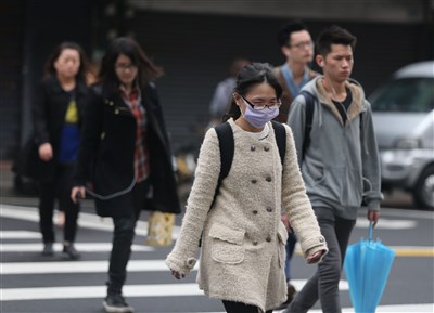 受到大陸冷氣團南下影響,北部及東北部天氣一早就明顯轉濕冷,通勤的民眾紛紛穿上厚重的衣物禦寒。圖/中央社