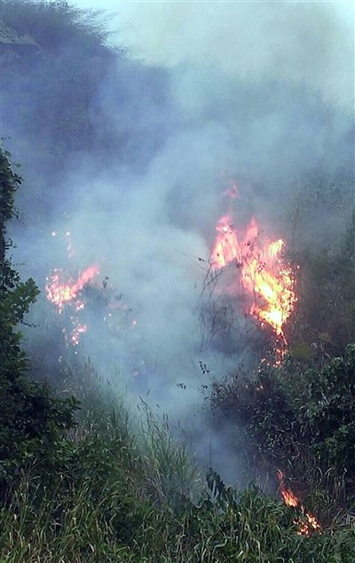 阿里山大埔區228、229林班地,今天傳出火燒山,因山區已有數月未下雨,地面乾燥,且火燒山現場多為草生地,火勢延燒速度快。圖/中央社