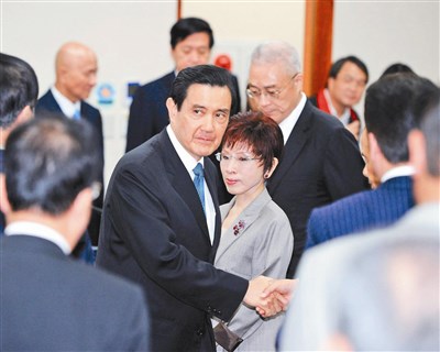 國民黨主席馬英九昨天向中常會請辭,並向與會者一一握手致意。圖/中央社