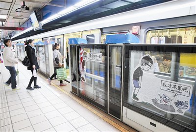 【本報台北訊】繼捷運松山線行動美術館車廂之後,網路知名插畫家Duncan、掰掰啾啾,還有以小孩獨特眼光看大人世界的九歲插畫家迷路,他們的插畫作品分別進駐忠孝復興站、市政府站與圓山站,妝點月台,讓候車旅客不再無聊。