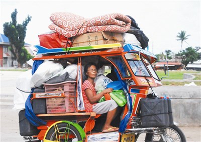 菲律賓東部萊特省居民趕在哈格比颱風登陸前撤離家園。圖/美聯社