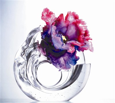 《四方禮讚聚寶瓶》用細緻的脫臘技術蓋身及現代表現的吹製寶瓶二者結合,展現生氣蓬勃、鼓舞人心的意志;《艷陽天》的花是火鸚鵡,火鸚鵡是鬱金香的一種,又稱熱情鸚鵡,熱情、奔放。琉璃工房認為,這兩件作品正好和金凱瑞在表演的熱情,以及多元的舞台魅力,相互輝映。