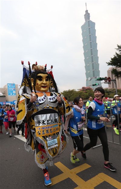 三太子也來跑馬拉松。圖/中央社