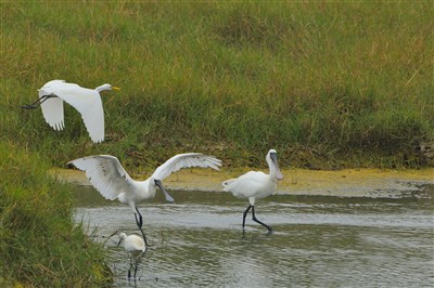 鄭信藏在大鵬灣濕地,捕捉到珍貴的黑面琵鷺覓食畫面,在網路上引起熱烈討論。圖/鄭信藏提供