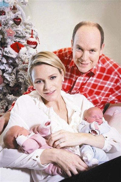摩納哥元首亞伯特二世,二十二日和王妃夏琳及兩周大的新生兒在醫院合影,王室於二十三日發布這張親王的全家福照。在照片中,夏琳王妃懷抱雙胞胎,她們分別穿著粉色和藍色連體衣,很容易辨認出他們誰是小公主,誰是小王子。而亞伯特二世親王則在後面深情地看著妻兒。夏琳於十日生下龍鳳胎賈克和嘉布莉拉。圖/法新社