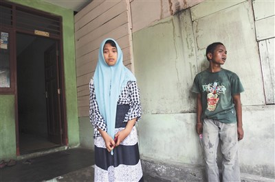 這張攝於十月二十一日的照片中兩人,據信可能是南亞海嘯失散十年,日前終於團圓的兄妹,左為蘿達圖、右為阿里夫。圖/美聯社