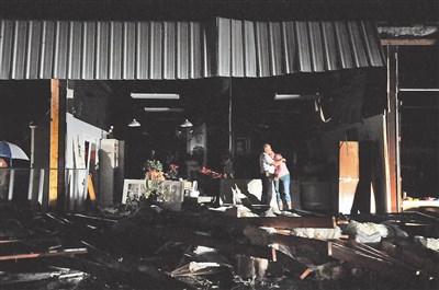 一對夫婦在密西西比州開花店,看到辛苦經營的店面被龍捲風毀於一旦,傷心的相擁而泣。