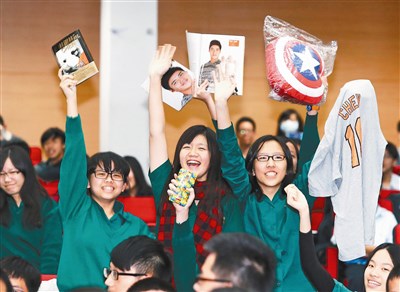 旅美職棒選手陳偉殷昨天到台北市師大附中演講,進行問答時,學生踴躍提問搶答,氣氛熱烈。圖/陳柏亨