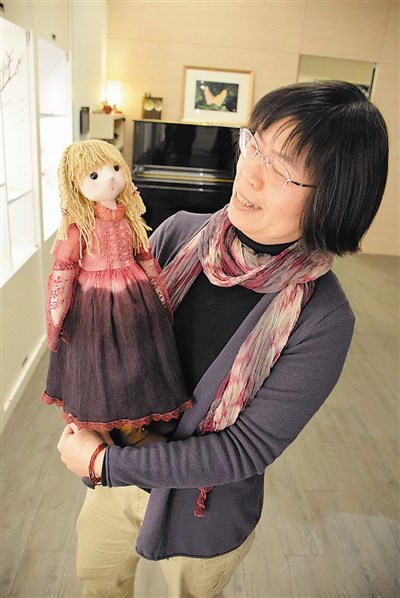張素環看著啟發她踏入植物染料的「莎賓娜」,她說,當初看龍鳳配這部電影時,對女主角奧黛麗赫本飾演的莎賓娜印象深刻,便把娃娃取名作莎賓娜。圖/李易昌