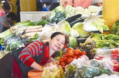 「這是今年最大筆的訂單」,樹菊阿嬤相當開心(上圖,中央社)。她說,年底了,總統寒冬送暖,一口氣買兩萬元,前天已經先拿走兩天的菜量,「有打折」。
