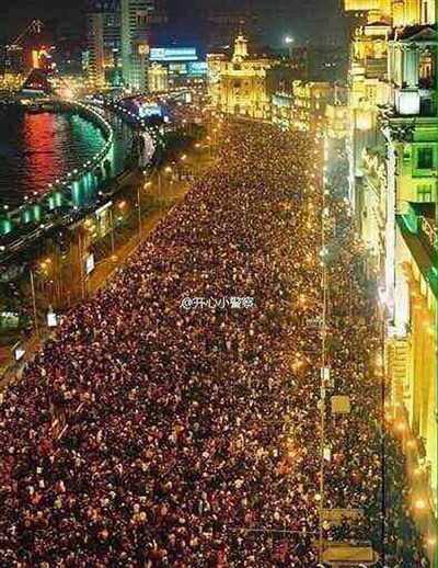 中國大陸上海外灘12月31日深夜發生跨年活動踩踏意外,造成傷亡悲劇。據目擊者說,事發時人潮擁擠、秩序混亂。圖為外灘跨年擠滿遊客的情景。圖/截自新浪微博