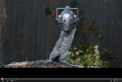 全家都是《超時空博士》劇迷的Emma Young,花了好幾個小時製作出Cybermen面具餵食器,並且放在庭院中,也成功引來松鼠享用,並拍攝到有趣的覓食畫面。Emma Young指出「第一隻找到面具覓食的松鼠相當害羞」,她的媽媽也表示,「整個觀察過程相當愉快,而且非常值得。」