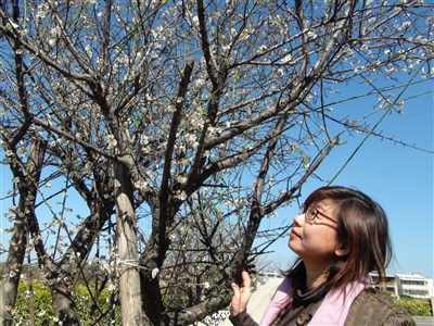 「哇!好美哦!」梅林公園栽種20多棵梅樹,最近枝頭悄悄綻放雪白花朵,猶如樹上點綴白雪一般,讓前來賞花的民眾大感驚喜,因該處外地人幾乎不知,人潮不擁擠,可以盡情放鬆心情賞花、拍照。
