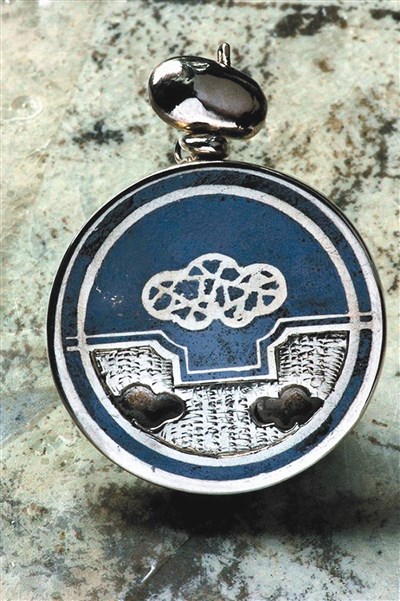 源自中世紀的墨銀,帶有神祕感的黑色銀合金,一般銀飾品的色彩差異是以染色或以色鉛筆處理,墨銀則填入另一種金屬,讓作品呈現兩種金屬顏色的質感。鄭博文將技法應用在創作上,營造特殊色彩,並加上中國式的林家花園漏窗主題,結合「影」的意象,充滿風景的想像力,讓藝術生活化。圖/中央社