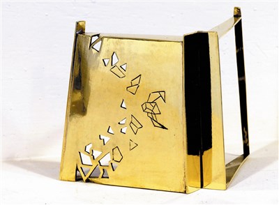 源自中世紀的墨銀,帶有神祕感的黑色銀合金,一般銀飾品的色彩差異是以染色或以色鉛筆處理,墨銀則填入另一種金屬,讓作品呈現兩種金屬顏色的質感。鄭博文將技法應用在創作上,營造特殊色彩,並加上中國式的林家花園漏窗主題,結合「影」的意象,充滿風景的想像力,讓藝術生
