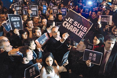 槍擊案後,全球各地都有群眾守夜,並打出「我是查理」的口號,表達對《查理周刊》的支持。
