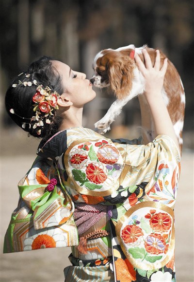 日本女孩會在成人日穿傳統和服,參加儀式。由於梳妝打扮的需求大,通常要一年前就跟美容院預約化妝時間。圖/歐新社