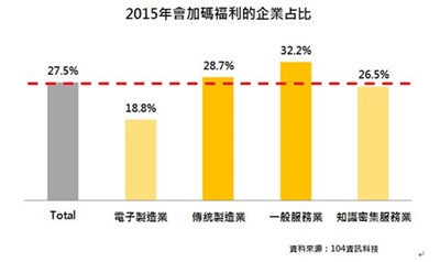 2015年會加碼福利的企業類型比重表。圖/104資訊科技提供