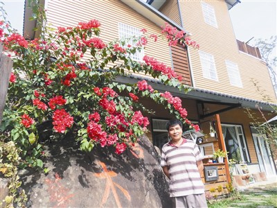 【本報苗栗訊】苗栗縣南庄鄉民鄧憶君大半人生在大台北打拚,前年返鄉,放慢步調,將自家休耕田改造成藝坊,室內外花草樹木及藝術品都由他一手打造,未來計畫與在地藝術家結合,擺放原住民工藝品,並協助在地小農販售蔬果,打造蓬萊文創市集。