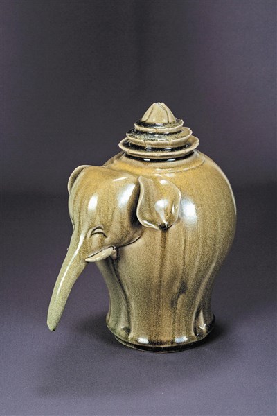 何志隆說,慢慢接觸佛教,在作品〈達摩〉、〈象尊〉等都含藏佛教元素;巡迴展從台北繁華之都出發,選擇華麗的孔雀,製作〈孔雀瓶〉致贈台北館。