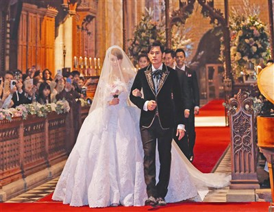 「周董」周杰倫、昆凌十七日在英國北約克郡塞爾比教堂大婚,兩分鐘婚禮影片上傳YouTube網站,歌迷直喊浪漫;周杰倫雙手挽起頭紗,牽住昆凌的手,閉眼接吻,幸福指數破表。背景音樂是周杰倫為走紅毯創作的音樂,由當地弦樂團演奏。