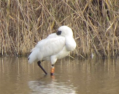 失聯多日的編號S80黑面琵鷺,腳上還繫著牠的編號腳環。圖/陳淑靈提供