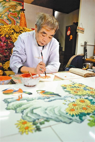 【本報宜蘭訊】宜蘭市工藝畫師顏文伯一手絕活「燒畫磚」,全台少見,在磁磚上彩繪花鳥、山水等圖樣,進窯燒製,工法瀕臨失傳,為保留傳統工藝,宜蘭市鄂王社區向縣文化局爭取,提報為宜蘭縣無形文化資產,下周將審查,預料通過機會很大。