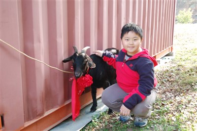 張又元很喜歡他的新朋友小羊,這兩天經常關心羊兒的動態,把牠當成好友。圖/蔡家蓁