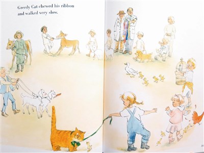 喬伊.考莉是紐西蘭最受歡迎的童書作者,有「青少年小說的神仙教母」之稱。圖為其創作繪本《貪心貓參加學校寵物秀》。圖/何定照翻攝
