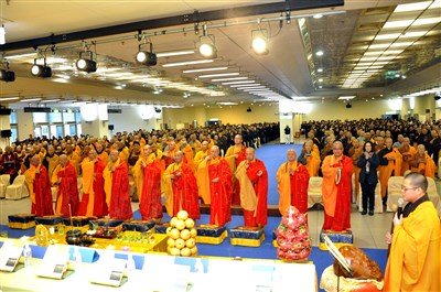 【記者林洛瀅新北報導】明天是復航空難罹難者頭七,行政院通函全國各機關下半旗一天悼念,向亡者致哀。中國佛教會發動全國教團暨24縣市佛教會,今天在新北市三重綜合體育館舉行「啟建復興航空GE235空難消災祈福暨超薦大法會」,中國佛教會理事長圓宗長老等10多位主法,僧信2千人齊心誦經回向。