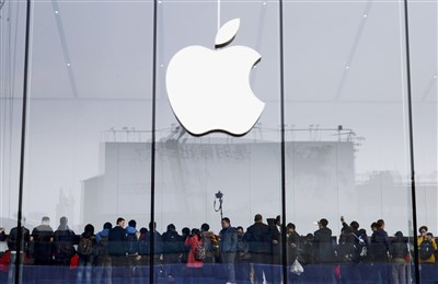 中國市場營收大增,推動蘋果上季財報刷新紀錄,蘋果市值已突破7000億美元,傲視群倫。圖為「果粉」在杭州蘋果專賣店前大排長龍。圖/路透
