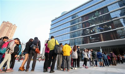 最近成為高雄熱門景點的高雄市立圖書館,出現大批排隊人潮,等著入館參觀。圖/本報資料照