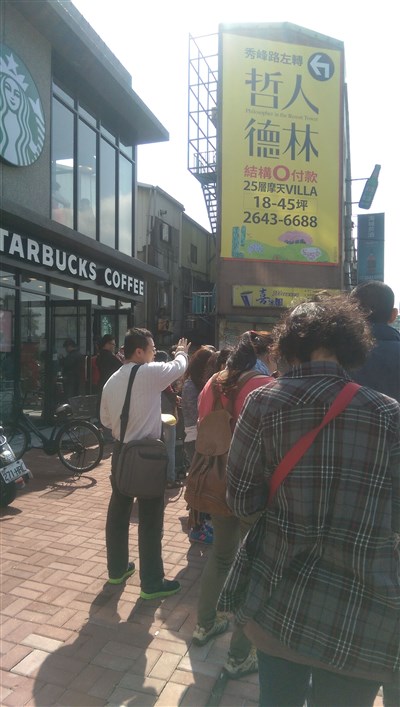 星巴克推出開工日買一送一,一早就吸引大批民眾排隊購買。圖/張耀宏