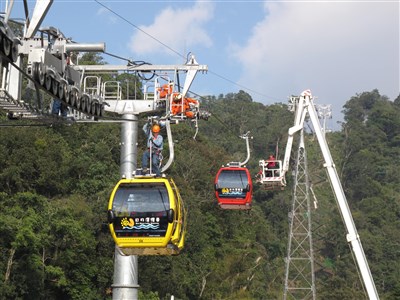 日月潭九族文化村纜車今天下午因台電跳電一度停擺,造成數百遊客短暫被困。圖/黃宏璣