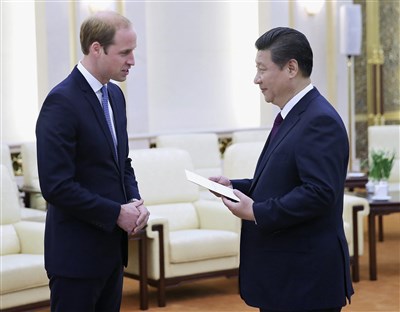 【本報綜合外電報導】大陸國家主席習近平上午在北京人民大會堂,與英國劍橋公爵威廉王子見面,兩人暢談足球經,習近平表示,期待今年訪英之行,將與英國領導人共同規畫中英關係未來發展。