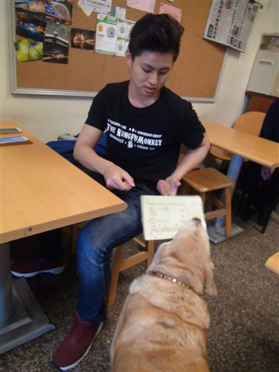餐館老闆娘黃淑娥說,E-ki乖巧又聰明,出生6個月就會幫忙,郵差送信來,牠就跑到門口收信;小餐館開店,E-ki會主動幫忙叼菜單、抽衛生紙,還會撿垃圾,是店內最稱職的服務生。