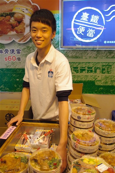 曾俊穎就讀南港高工夜校,白天打工賺經驗,對餐飲頗有興趣的他,去年進入台鐵賣便當,年輕的他不挑工作,從幫運便當、補貨開始做起,愈來愈上手,現在櫃台前幫忙叫賣及結帳,月入22K不算多,但他笑說很夠用。