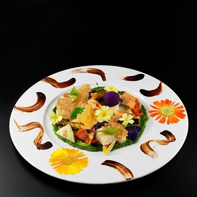 雲品酒店4月26日、27日邀請義大利米其林一星級素食名廚里蒙(Pietro Leemann)秀廚藝。圖為素食料理,菜名「田園好風光」。圖/雲品酒店提供