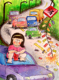 年。只要是過年時間,幾乎都會塞車,在車上的感覺很不好。還有,過年時,親戚的小孩全都到齊,大家就開始談論小孩的成績,我覺得很厭煩。