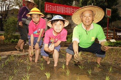 【本報新北訊】擁有農地的新北市新莊區新泰、國泰國小,今天都帶領小朋友插秧播種,義工媽媽說:「現在的小朋友很少有機會摸到泥土,他們摸到泥土的時候都很開心。」