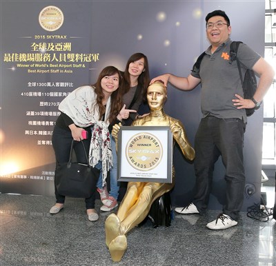 桃機慶獲航空界奧斯卡 小金人快閃 |2015.03.19 語音朗讀 824觀看次 字級 大 中 小 桃園機場服務人員榮獲得航空界奧斯卡獎Skytrax肯定,今天兩座航廈出現快閃小金人,吸引不少旅客。圖/陳嘉寧 【本報桃園訊】桃園機場日前獲得有航空界奧斯卡獎之稱的Skytrax「2015全球及亞洲最佳機場服務人員」雙料冠軍獎,為了讓旅客及機場工作人員分享這分喜悅,今天邀請表演藝術者裝扮成小金人,到桃園機場兩座航廈快閃,吸引不少旅客與小金人合照。 這項小金人快閃活動,今天下午分別在桃園機場第一航廈入境大廳,以及第二航廈出境大廳展開,旅客只要與小金人合照並上傳臉書,就可以獲得台灣特產鳳梨酥。 前一篇文章 加油等一等 下周油價再探新低 下一篇文章 印地安泉名人賽 費德勒晉8強 熱門新聞 01渥太華佛光山 授海狸童軍領巾2025.11.1702【閃文集】貓咪成長的魅力2025.11.1803【詩】遊園地.競馬場2025.11.1704【快樂塗鴉簿】熱鬧的內灣小鎮2025.11.1705克林姆富家女肖像畫 估值46億元2025.11.1706AMR機器人 是什麼?2025.11.1707【島嶼拼圖】啜飲時光佳釀:探訪嘉義文化創意產業園區 2025.11.1808落葉刺繡 巴西百鳥寫真集2025.11.1709中日緊張 陸4海警船巡航釣魚台2025.11.1710【考考你的智力】2025.11.17 訂閱電子報 台北市 天氣預報 台灣一週天氣預報 相關報導 【星雲大師如是說】處事禪心【星雲大師如是說】人間佛教【星雲大師如是說】正信之美【星雲大師如是說】輪轉相繼【星雲大師如是說】有情的層次【星雲大師如是說】六忍歌