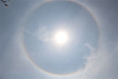 「日暈是太陽折射大氣中懸浮冰晶,反射形成的光學現象。」台中氣象站主任柯任賢指出,氣象學所謂的「光象」,指的是來自太陽光或月光照射大氣中冰晶,經折射、反射、繞射等產生的光學現象;來自太陽光線稱「日暈」、月亮則稱「月暈」,暈通常呈環狀或弧狀,有紅、橙、黃、綠、藍、靛、紫7種顏色,暈的大小則與折射角度有關。