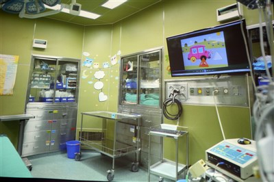 王桂櫻表示,改裝後的兒童手術病房,家人可以帶著小孩子熟悉的玩具或物品在等候區陪伴,手術房以可愛壁畫呈現溫馨的布置,並以電視播放知名卡通,轉移病童的注意力,減少哭鬧。