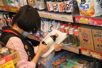 中市衛生局稽查輻汙產品,逐一清點比對賣場架上商品。圖/中央社