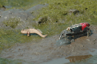 屏東縣林邊鄉的林邊溪有不少養殖業者,蘊育了無限的生機。每當潮落之時,潮間帶就熱鬧了起來。在忙於覓食之際,招潮蟹仍不時舉起大螯,宣示領域;彈塗魚在退潮時,喜歡穿梭在泥沼中追逐嬉戲,但一有風吹草動,立即迅速鑽入洞穴。